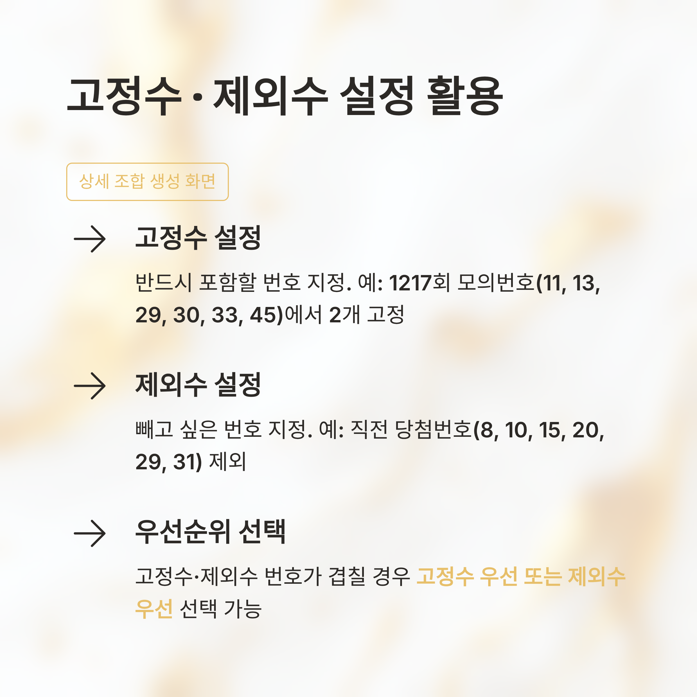 고정수·제외수 설정으로 나만의 조합 만들기