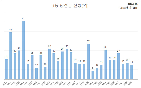 1039회 ~ 1050회 13주간 로또 1등 당첨번호와 보너스 번호 내역을 준비했습니다.